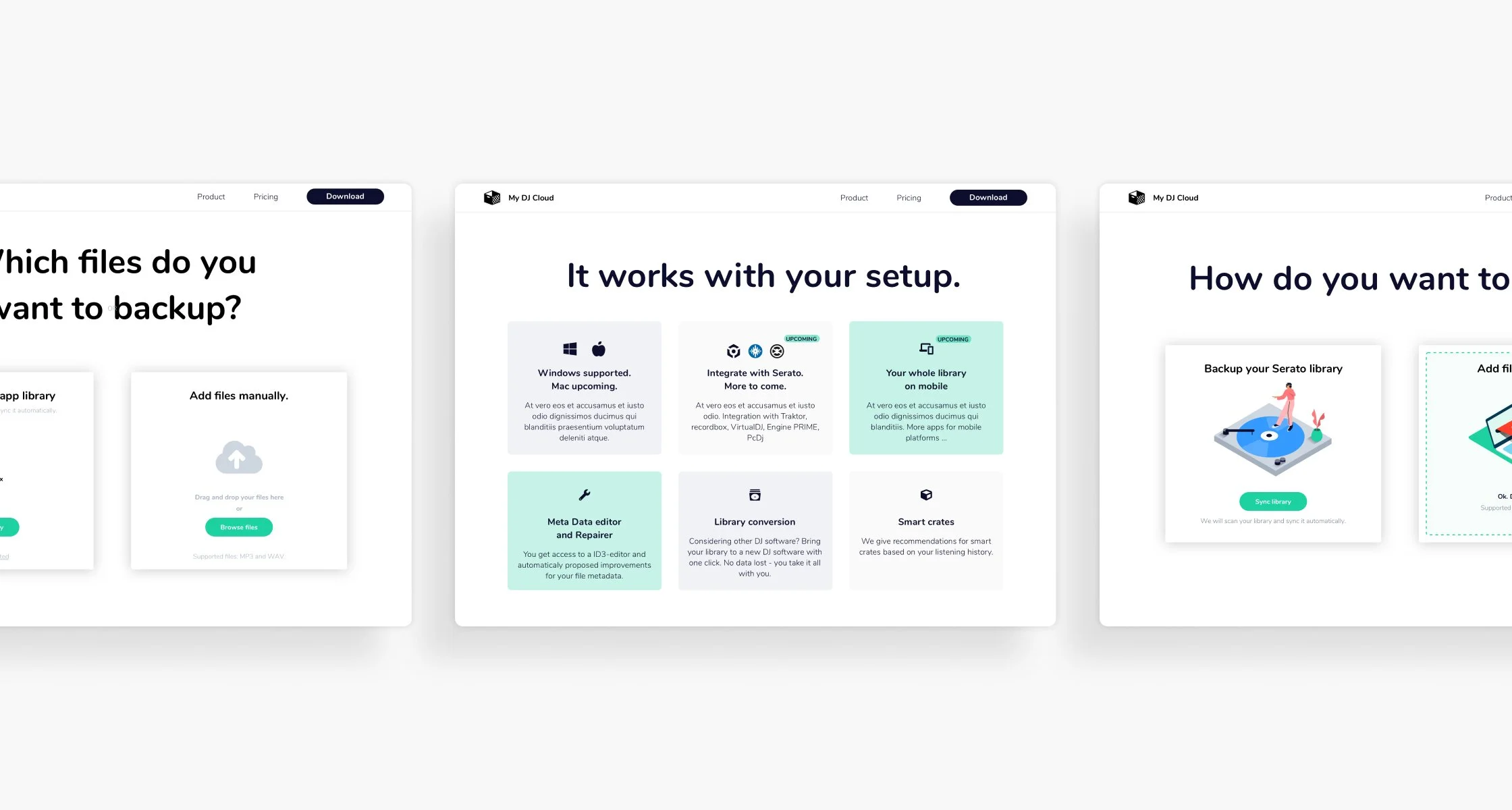 My DJ Cloud app seamlessly integrates with leading DJ software, including Serato, rekordbox, and Virtual DJ. The project scope included an onboarding wizard and third-party setup process to ensure that users can quickly and easily connect the app with their preferred DJ software. The integration empowers DJs to manage their music libraries and backups with enhanced efficiency and flexibility, streamlining their workflow and allowing them to focus on what matters most — their music and performances.